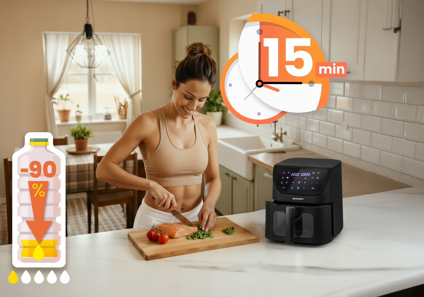 Valmista kuumaõhufritüüriga ideaalselt krõbedad friikartulid, mahlane kana või kuldsed köögiviljad – kõike seda ilma liigse rasvata! Vähem kaloreid, mis aitab soovi korral ka hoida kaalu paremini kontrolli alla.