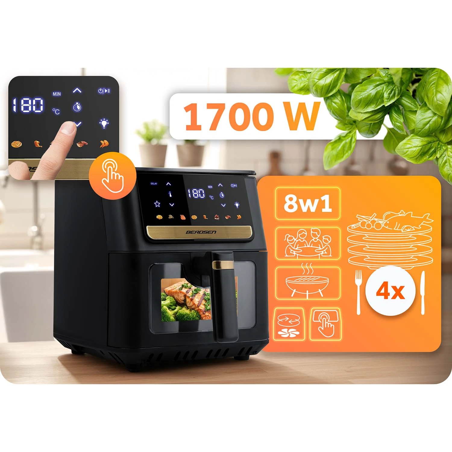 Mitmekülgne köögitehnika, kuni 8 erinevat võimalust maitsva toidu valmistamiseks. Kiiresti ja lihtsalt valmivad ideaalselt krõbedad friikartulid, mahlane kana või kuldsed köögiviljad – kõike seda ilma liigse rasvata! Toit küpseb ühtlaselt: väljast mõnusalt krõbe ja seest mahlane.